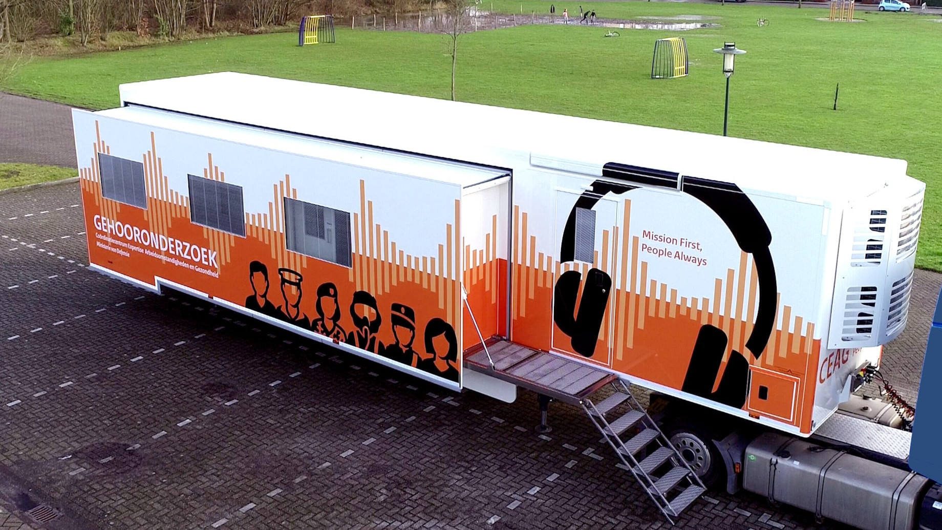 Hertoghs Akkermans realiseert al vele jaren specialistische voertuigen en units voor Defensie. Van sanitaire containerunits voor veldhospitalen tot mobiele tandheelkundige klinieken en van specifieke transportoplossingen tot volledig uitgeruste mobiele audiologische onderzoeksfaciliteiten: wij bouwen “gebouwen op wielen” die precies doen wat de operatie vraagt.