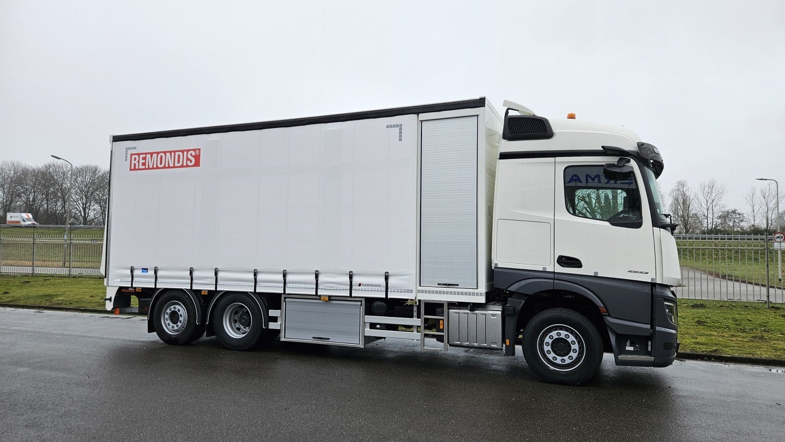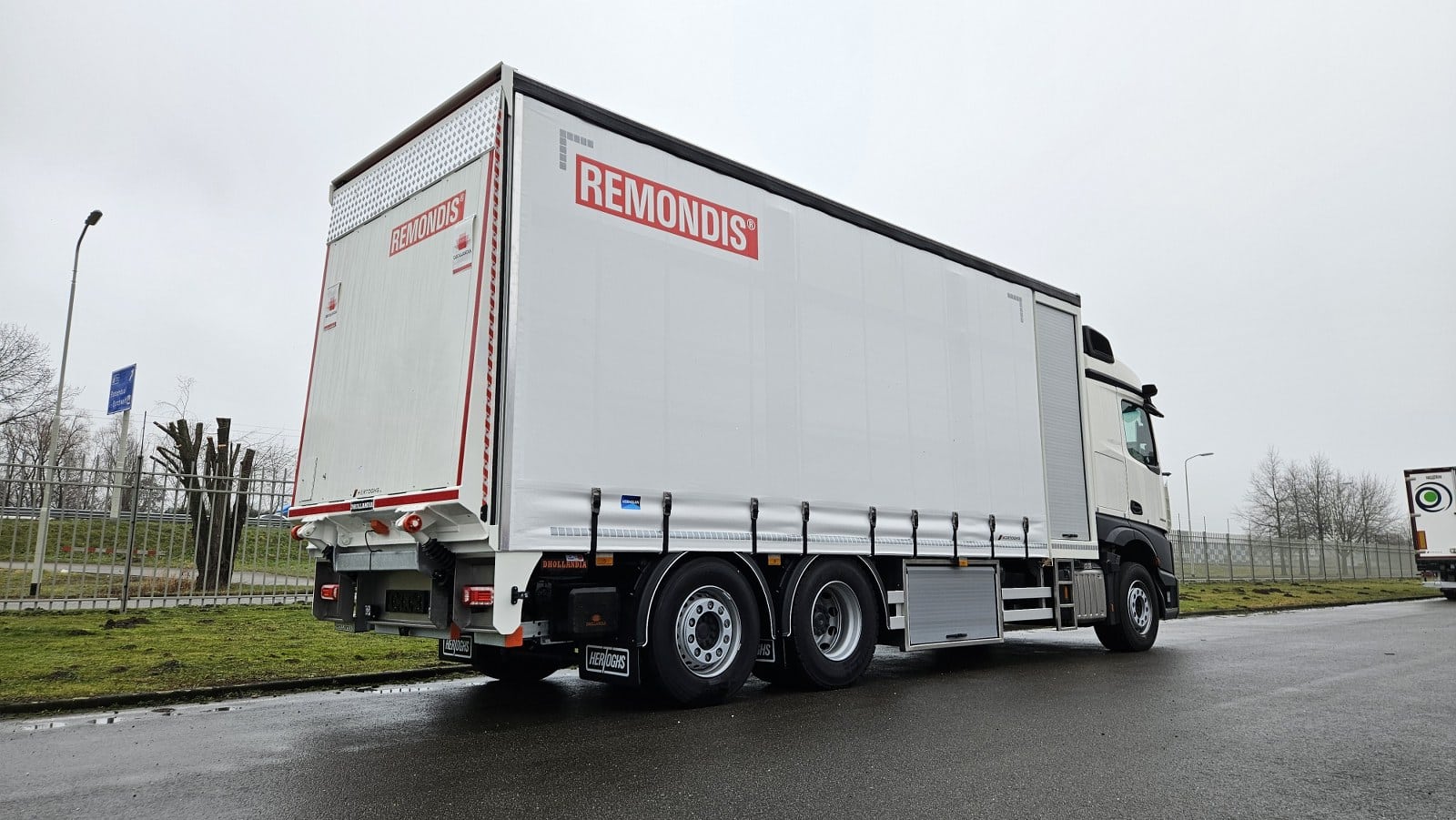 Voor Remondis, specialist in afvalinzameling, verwerking en recycling, leverden wij een op maat gemaakte schuifzeilcarrosserie op een robuust RVS grondraam.